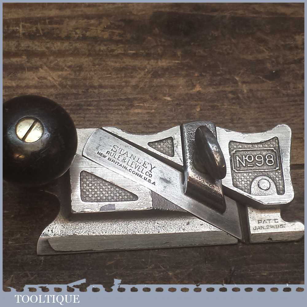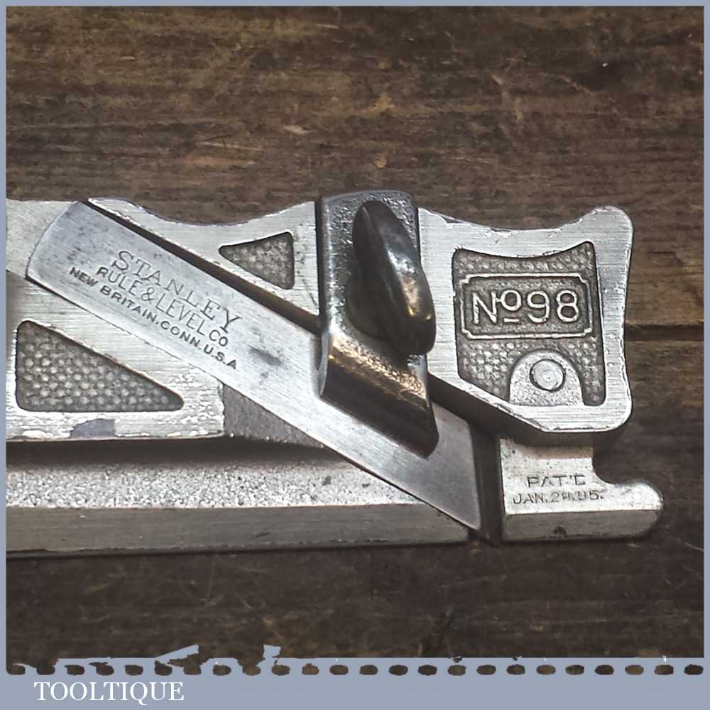 Antique Stanley rule & level side rebate plane No: 98 Patent dated Jan 29 1895 in good used condition bar the wear to the nickel coating.