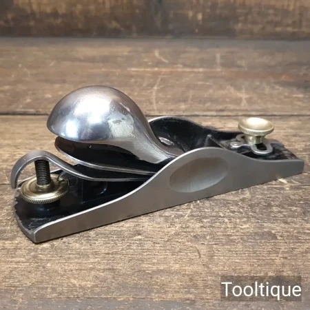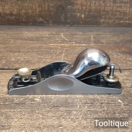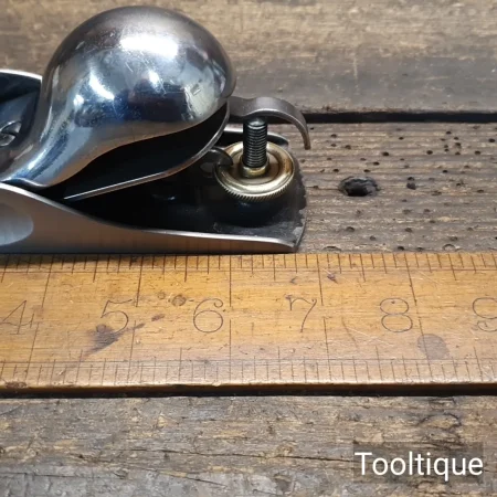 Scarce Antique Stanley USA 7” Long No: 19 Knuckle Cap Adjustable Throat Block Plane, fully refurbished ready for use and in good used condition. Note: These are the extended version rarely seen, original Sweetheart Iron. When refurbishing planes, we do not merely clean them to make them look good, they are restored to a level that ensures this plane is actually ‘in plane to within 0.01mm’ sharpened, honed and all the components are thoroughly cleaned so that they move freely. Our planes are specifically reconditioned to satisfy professional tradesmen who will instantly know the difference between buying one of our planes over general other used ones.