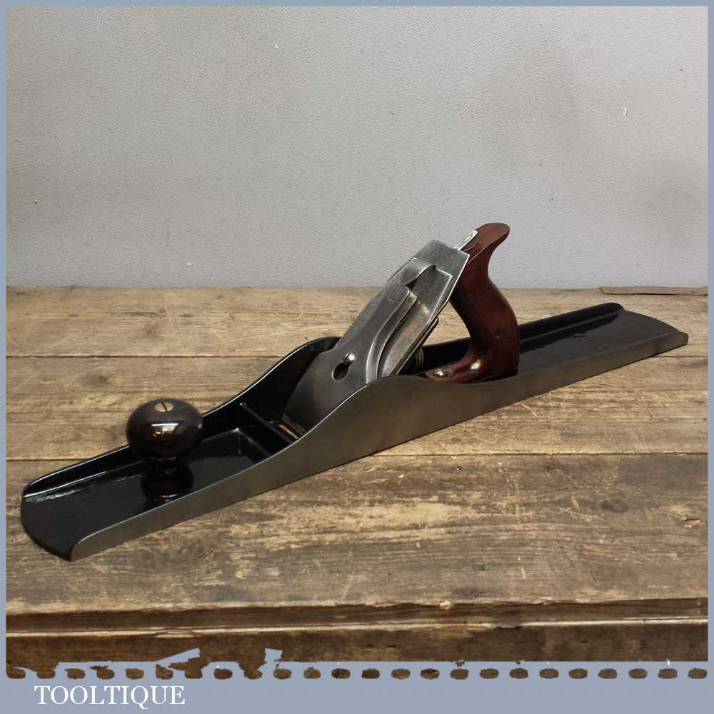 Antique Stanley USA low knob No: 7 Jointer Plane PAT dated 1910-18 with rosewood handles. The plane has been fully refurbished and is in good used condition.