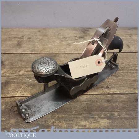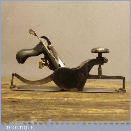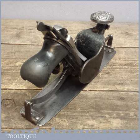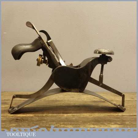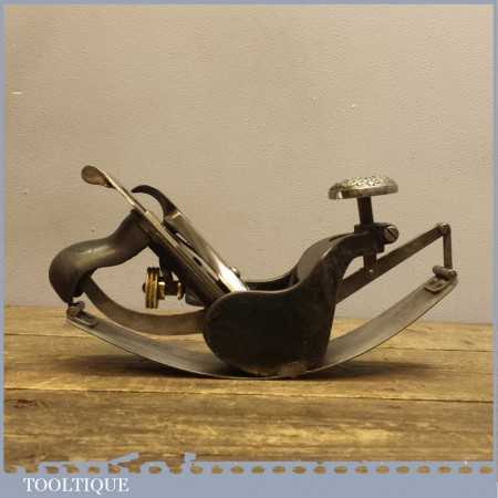 Scarce Antique Stanley USA No: 113 compass plane with decorative front knob which is in good used condition. These planes are pretty hard to find with this decorative aesthetic design and as such would make a good addition to a Stanley tool collection even though it is perfectly useable.