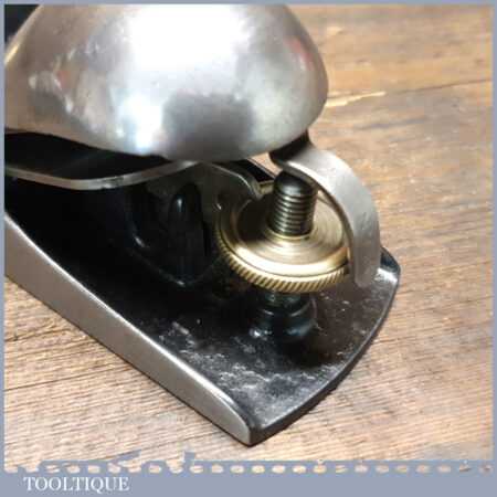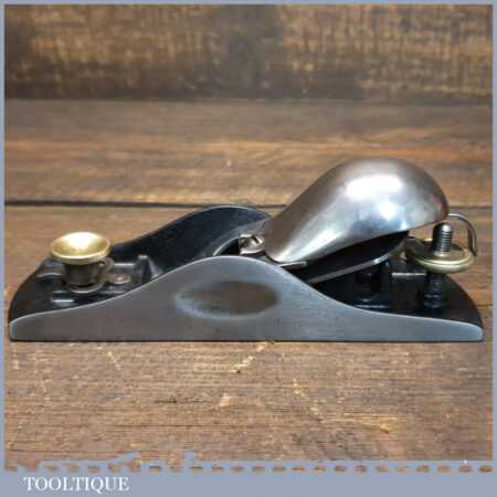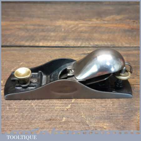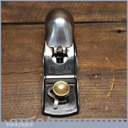 Antique Stanley USA No: 19 block plane (Pat dated 1886) with knuckle top quick release lever cap and original Stanley Sweetheart iron, fully refurbished ready to use and in good used condition.