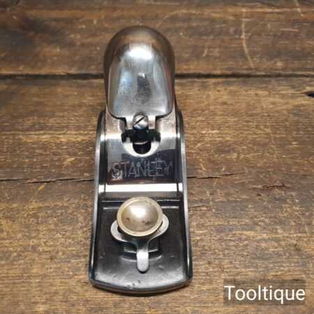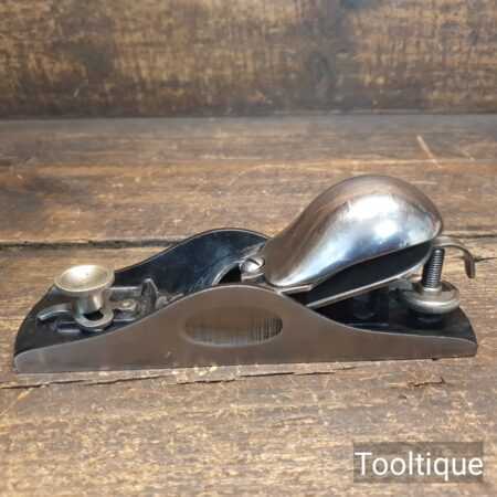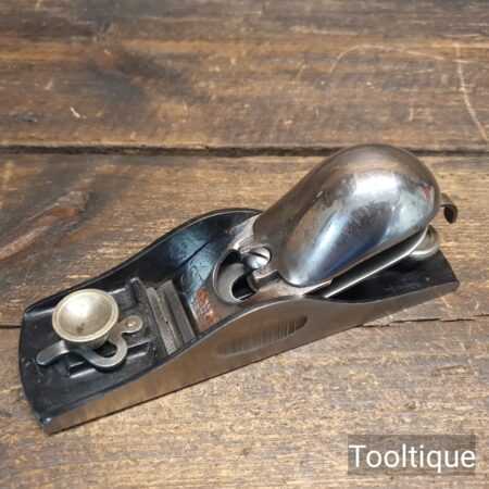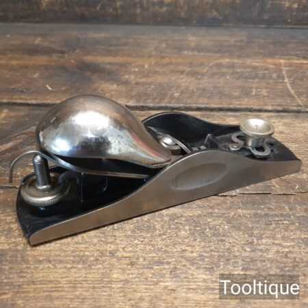 Nice Antique Stanley USA No: 19 knuckle cap adjustable throat block plane in good used condition, refurbished ready for use. This plane has gone through the usual Tooltique treatment of having its sole lapped flat, sharpened and honed and all parts adjusting smoothly. Note: these are approx 1” longer than the 9 ½ and less common.