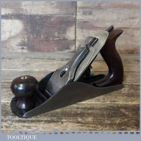 Antique Stanley USA No: 4 low knob Pat 1902-10 smoothing plane refurbished ready for use and in good used condition. Note: Later Made in England iron.
