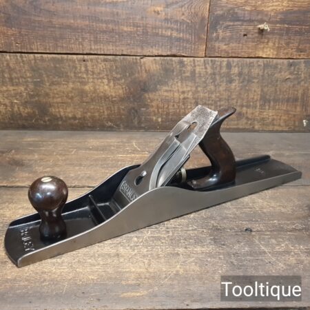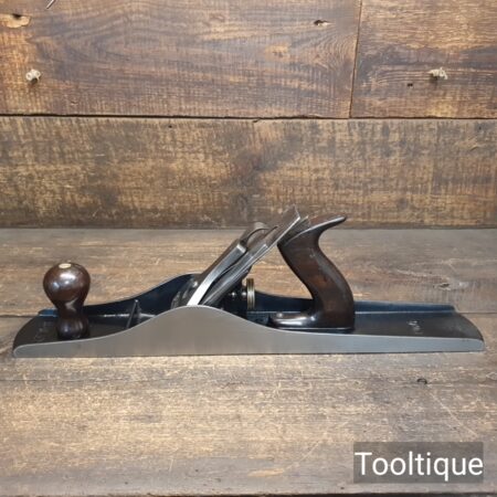Antique Stanley USA No: 6 Jointer Plane with Rosewood Handles, fully refurbished ready for use and in good used condition. When refurbishing planes, we do not merely clean them to make them look good, they are restored to a level that ensures this plane is actually ‘in plane to within 0.05mm’ sharpened, honed and all the components are thoroughly cleaned so that they move freely. Our planes are specifically reconditioned to satisfy professional tradesmen who will instantly know the difference between buying one of our planes over general other used ones.