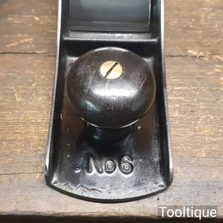 Antique Stanley USA No: 6 low knob jointer plane with rosewood handles, fully refurbished and in good used condition, ready to use. Note: Fitted with later Stanley England iron.