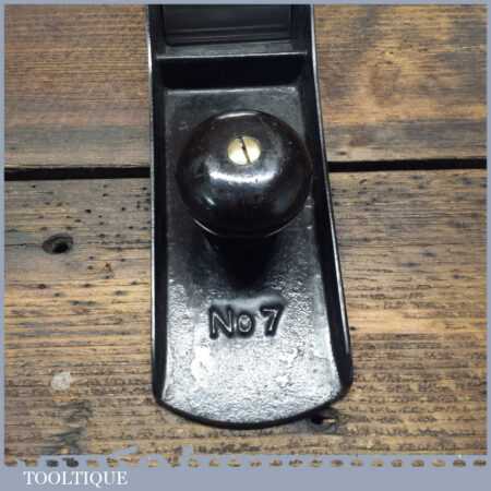 Antique Stanley USA No: 7 low knob jointer plane with original iron and rosewood handles, fully refurbished ready to use and in good used condition. Note: Solid repair to the Tote handle.