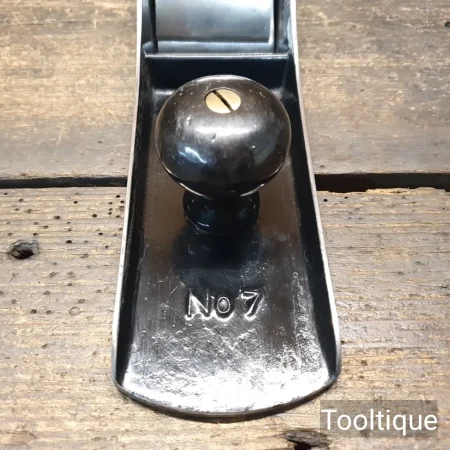 Antique Stanley USA No: 7C Corrugated sole Jointer Plane with rosewood handles, refurbished ready for use and in good used condition. Note: Fitted with a Early post war English 2 3/8” Iron. When refurbishing planes, we do not merely clean them to make them look good, they are restored to a level that ensures this plane is actually ‘in plane to within 0.05mm’ sharpened, honed and all the components are thoroughly cleaned so that they move freely. Our planes are specifically reconditioned to satisfy professional tradesmen who will instantly know the difference between buying one of our planes over general other used ones.