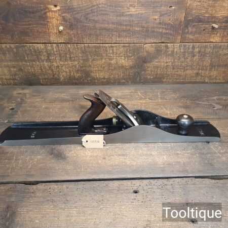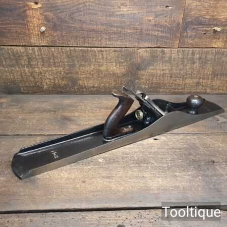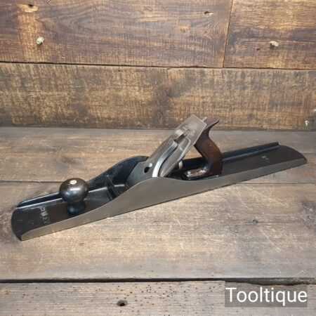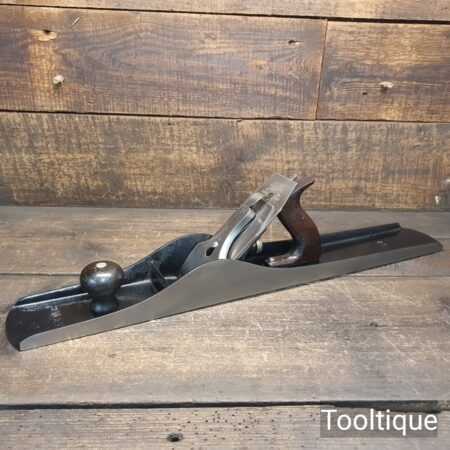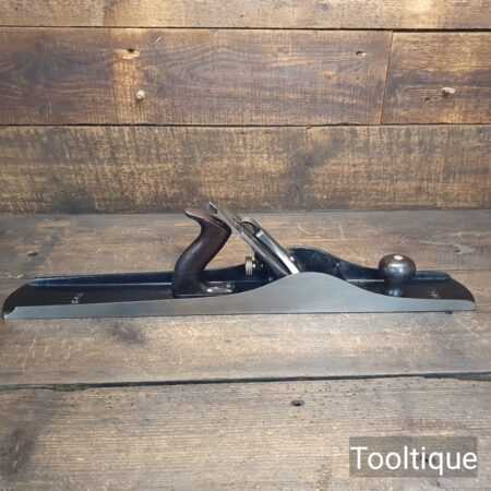 Antique Stanley USA No: 8 Jointer Plane PAT Dated 1902-10 with Rosewood handles, fully refurbished ready for use and in good useable condition. Note: The upstand on the casting has been ground at the rear, probably because it had chipped, this is cosmetic and does not affect its use, (Hence Price). It has a good length Replacement Record Crucible Steel Iron. When refurbishing planes, we do not merely clean them to make them look good, they are restored to a level that ensures this plane is actually ‘in plane to within 0.05mm’ sharpened, honed and all the components are thoroughly cleaned so that they move freely. Our planes are specifically reconditioned to satisfy professional tradesmen who will instantly know the difference between buying one of our planes over general other used ones.