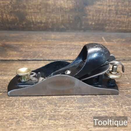 Antique Stanley USA No: 9 ½ adjustable throat block plane in good usable condition, refurbished ready for use. Note: Couple of points to mention with this plane, the width of the throat has opened up due to chip and a small minor hole in the adjuster sole plate. Hence price.