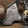 Antique Stanley USA Pat Dated Oct 29-01 Open Throat Router Plane with Hard Maple Handles, refurbished ready for use and in good used condition. Note: Comes with single Iron.