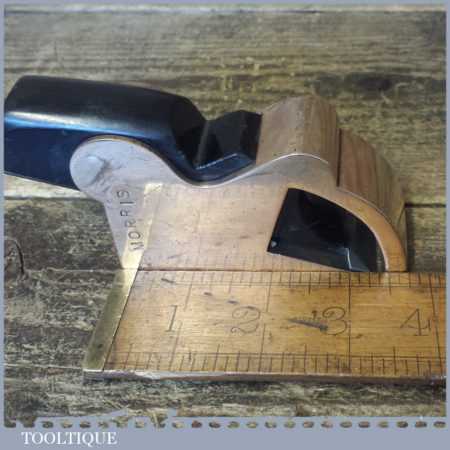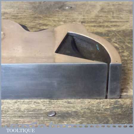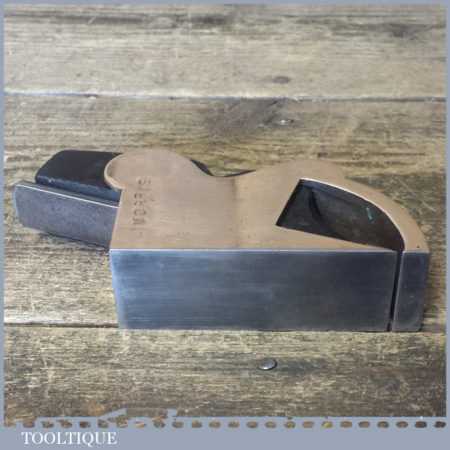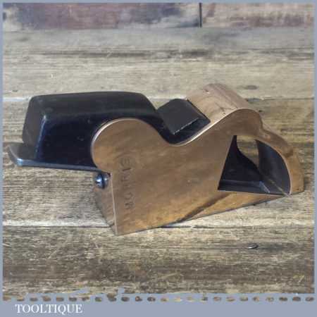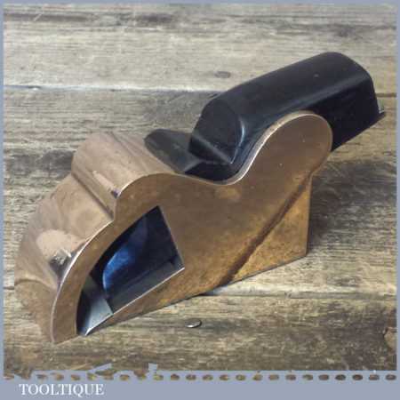Antique steel soled gunmetal infill bullnose rabbet plane with an ebony wedge, in good used condition. This oozes quality and is almost certainly manufactured by one of the better makers possibly by Miller of London. This has been refurbished for use so is now tested as perfectly flat, sharpened and honed and cleaned to show the gunmetal in its full glory. Note: this will dull with handling and time.