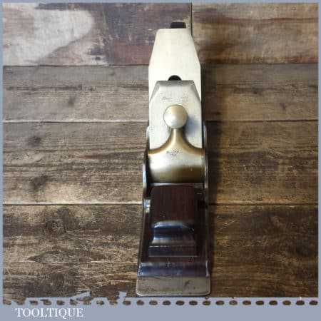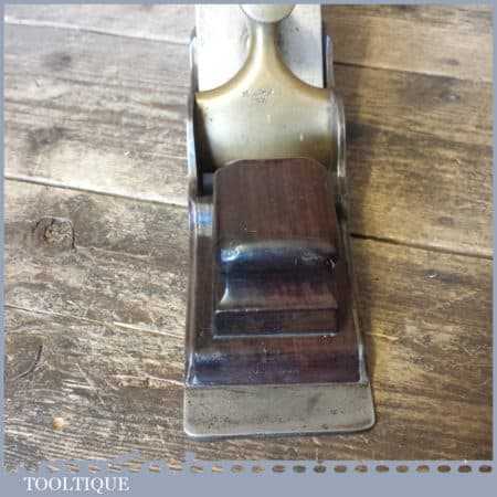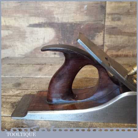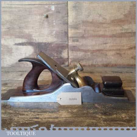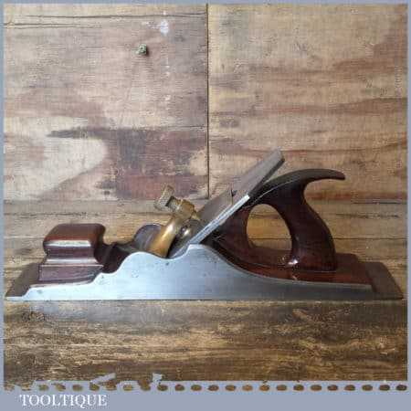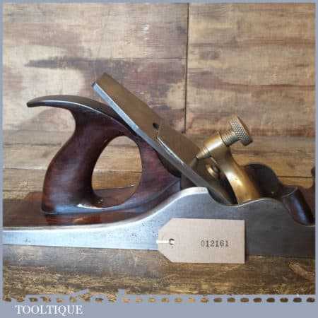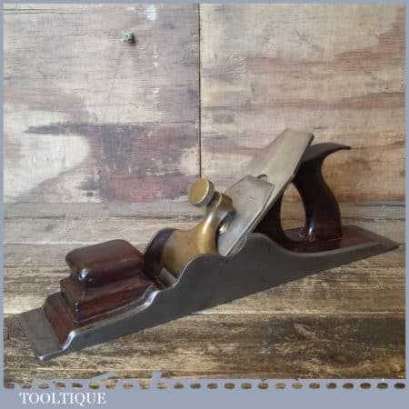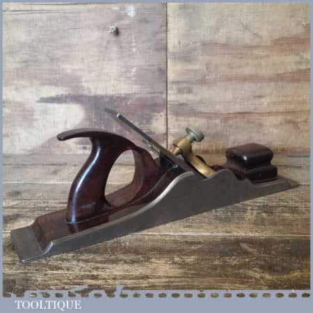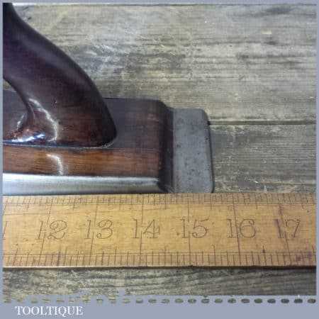 Antique Stewart Spiers 15 ½” dovetailed panel plane with rosewood infill and original iron, in good used condition. This plane came from a pattern maker that replaced all his planes with these un-named parallel irons which seem to be high quality and sharpen with a keen edge, he used all his planes daily. The sole has been lapped flat to improve its performance and it works like a dream. Note: The top of the rosewood handle has had a good repair.