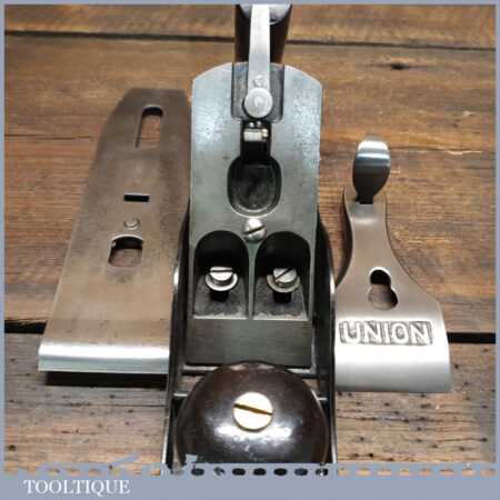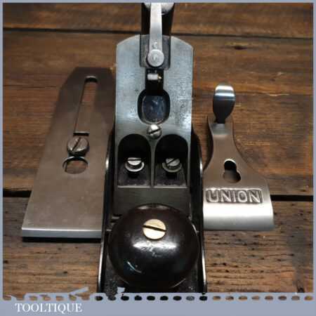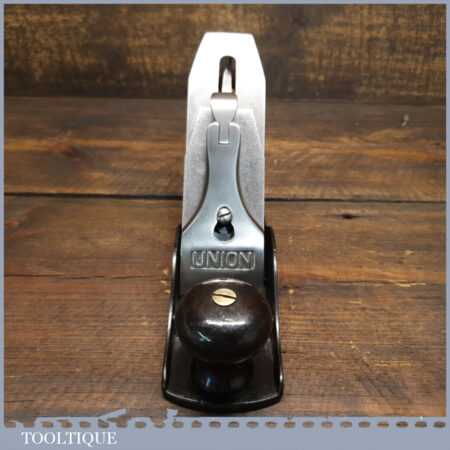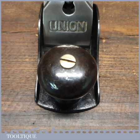 Antique Union Mfg Co. USA No: 4 low knob smoothing plane with rosewood handles, fully refurbished ready to use and in good used condition. Note: Fitted with later Stanley, England iron.