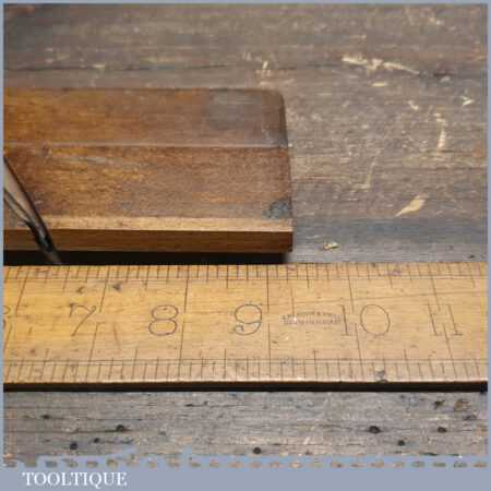 Antique and unusual standing 1/8” cock bead beechwood moulding plane in good used condition.