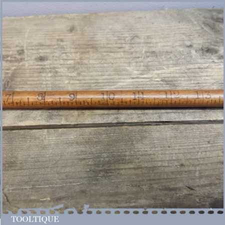 Antique Victorian Brass Tipped Yard Stick Ruler with mark and in good condition divided with 1/8 of a yard measurements and also in Inches, often used by hardware stores or by drapers. These do have a tendency to warp over the years so may not be perfectly straight although this isn’t a major factor as a bit of steam is the cure to addressing this.