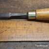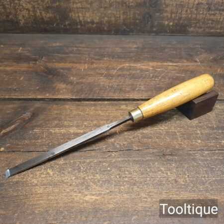 The chisel has been checked to ensure the tang is seated properly and the handle is solid and fit for use. All refurbished chisels are water cooled during the sharpening & flattening process to ensure the tempering is not affected.