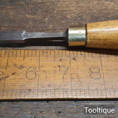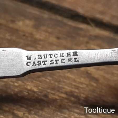 Antique W. Butcher ⅜” Carpenter’s firmer chisel with boxwood handle in good used condition, fully refurbished sharpened and honed ready for use. Note: Seating crack near ferrule where it was rehandled has been resin treated.