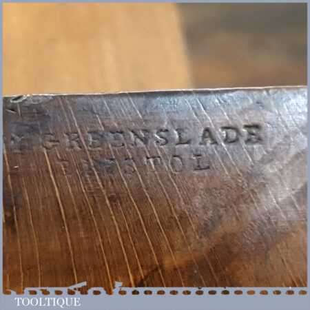 Antique W. Greenslade of Bristol beechwood coffin shaped smoothing plane in good used condition, some scratches to the sole but won’t affect its use. Note: This plane has been lapped flat and the iron and chip breaker have been refurbished ready for use.