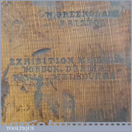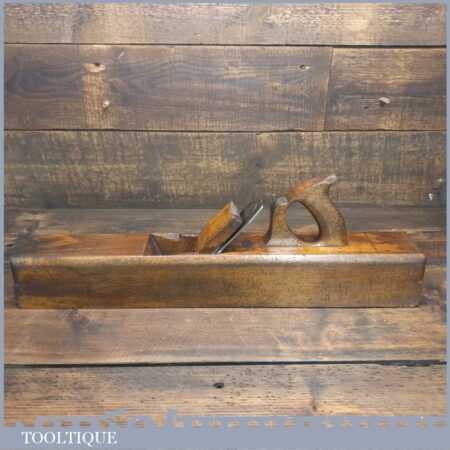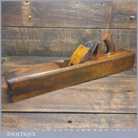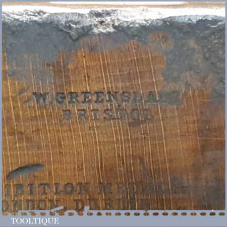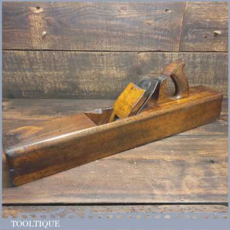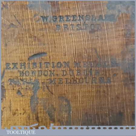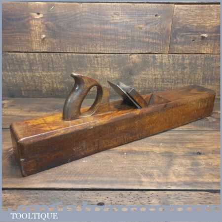 Antique W. Greenslade of Bristol Exhibition stamped carpenter’s 22” beechwood trying plane in good used condition. Lapped flat and sharpened ready for use.