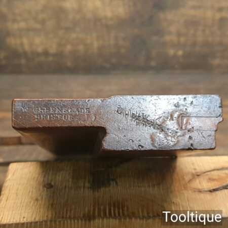 Antique W. Greenslade of Bristol 1/8” side bead beechwood moulding plane with boxwood insert, in good used condition.