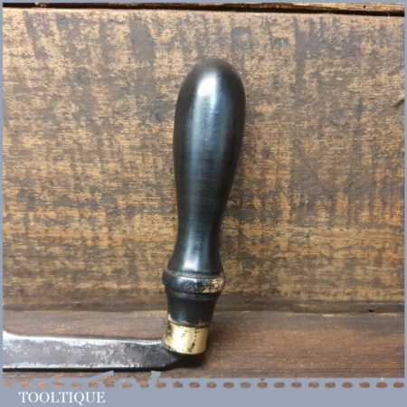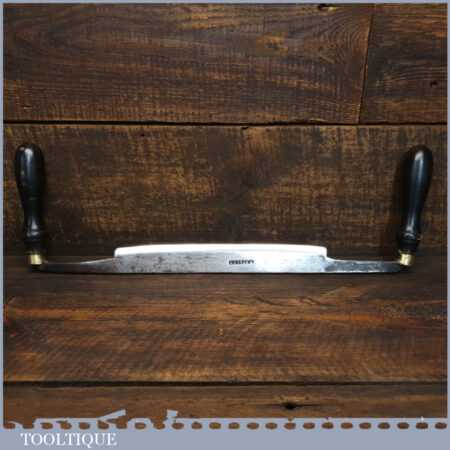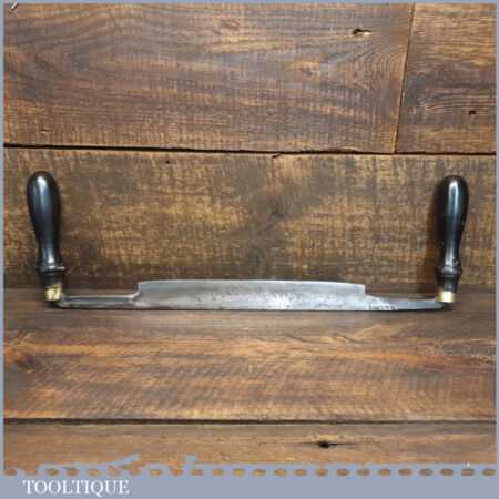 Antique W. Staley, 50 Rockingham Street, Sheffield. (c.1833) drawknife with an 9 ½” cutting edge and ebonised beechwood handles, sharpened and honed ready for use and in good used condition. Note: Handles are a later replacement as they would have been much simpler in style.