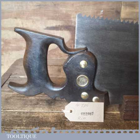 Antique warranted superior 26” rip saw with 4 tpi and a London style pattern handle, fully refurbished and sharpened ready for use.