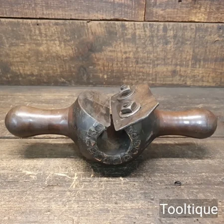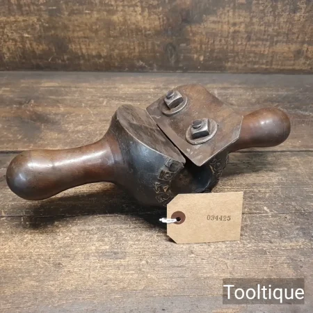 Antique Wheelwrights 1 ½” – 1 1/8” Rounding Mill or Spoke Plane with copper lining, refurbished ready for use and in good used condition. Note: The Iron has been dressed and sharpened and adjusts freely.