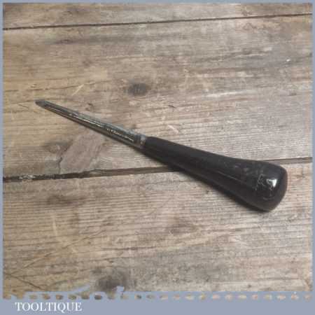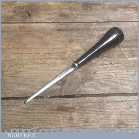 DESCRIPTION: VINTAGE WILLIAMS CARVING ROUNDED SKEW END NICKER TYPE CHISEL WITH EBONY HANDLE IN GOOD CONDITION FOR ITS AGE, WITH EBONY HANDLE.