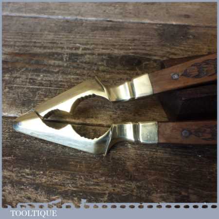 Attractive pair of brass nutcrackers with carved wooden handles, in good used condition.