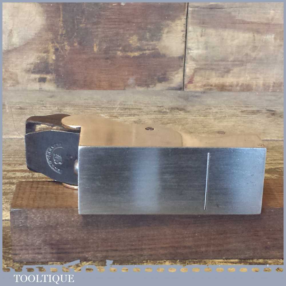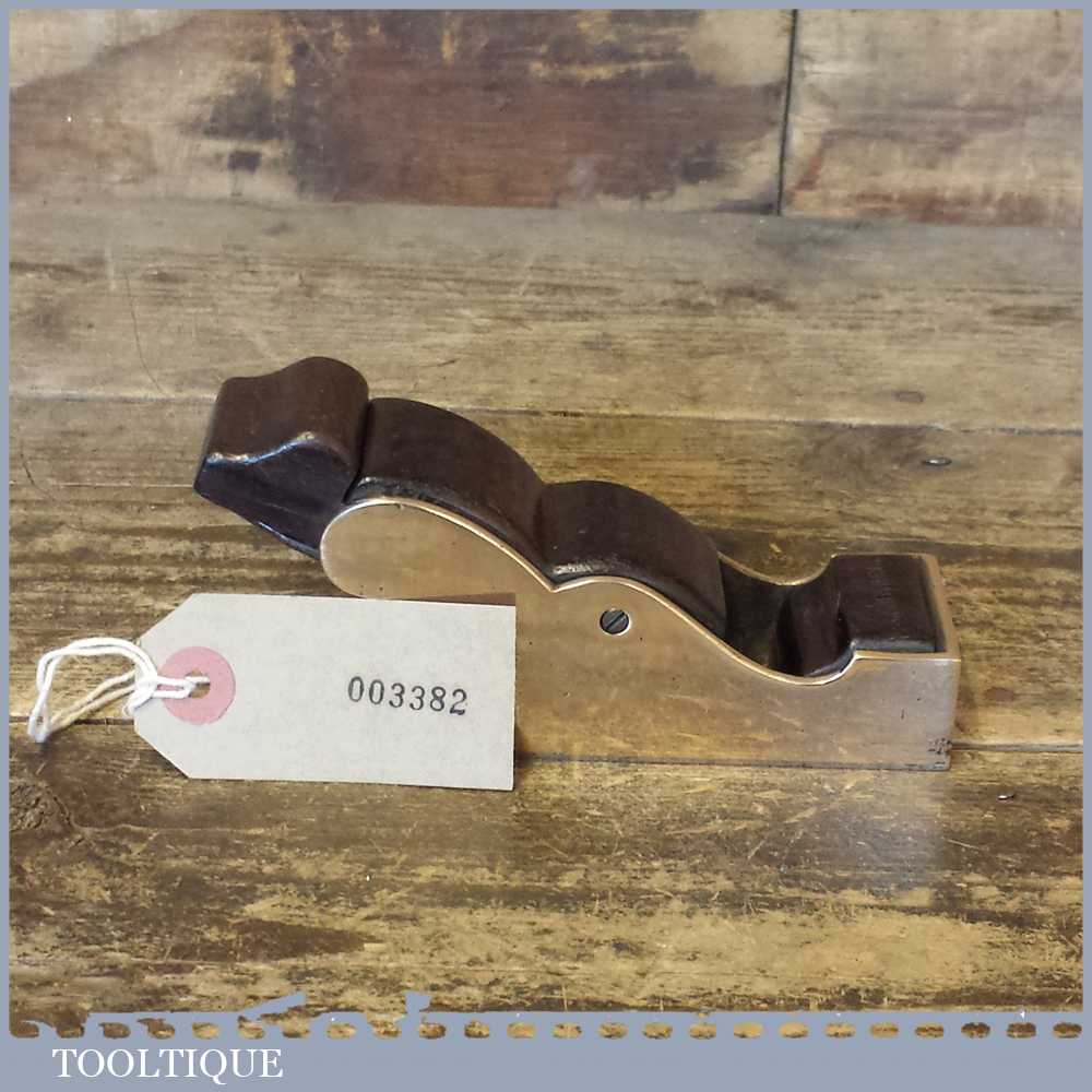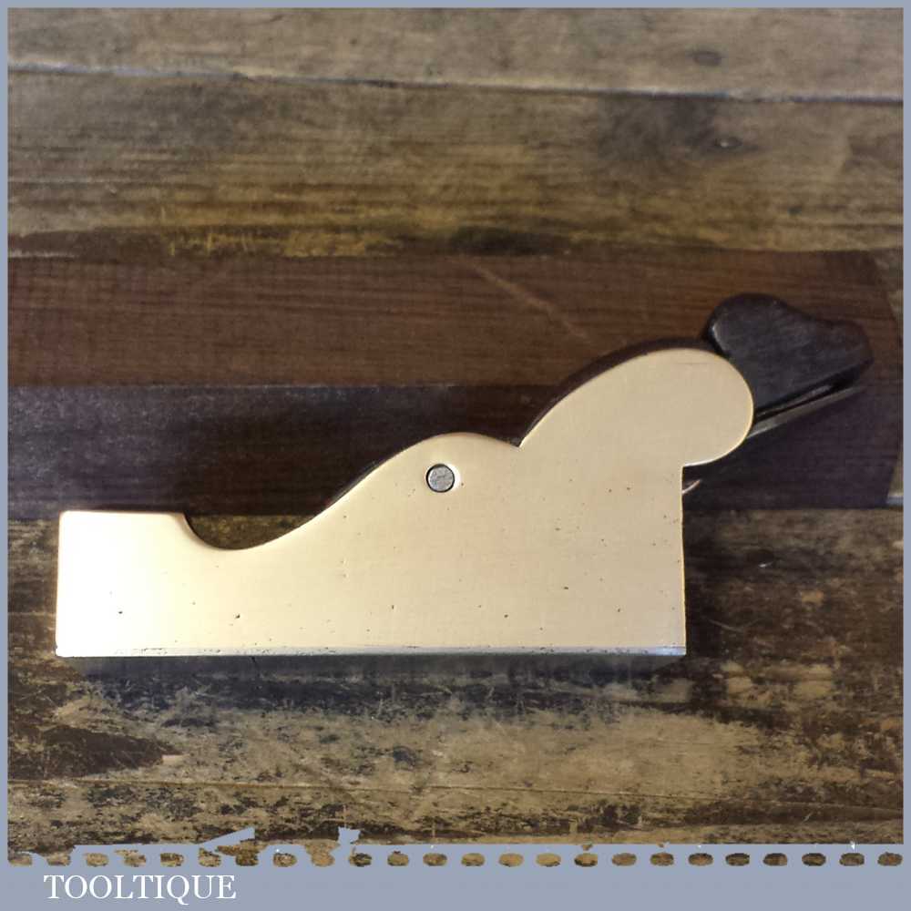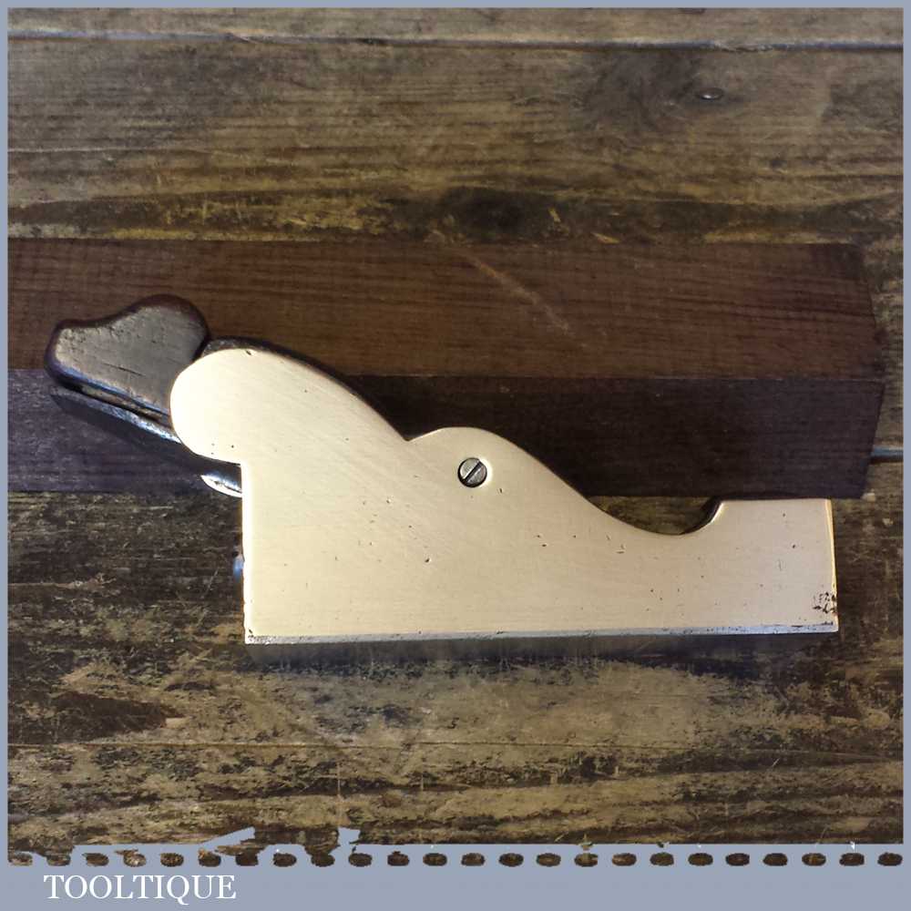 Beautiful antique gunmetal & Rosewood infill chariot plane with super tight mouth and sweated on steel sole in lovely condition. The plane also has a very clever rosewood lever cap with matching wedge which holds the Isaac Greaves iron in place. The plane has now been refurbished properly (Note: it had no patina to the body and was stained by stickers) but will now age gracefully in time with regular handling. This plane is also perfectly useable and has been tested for flatness on our precision granite bed.