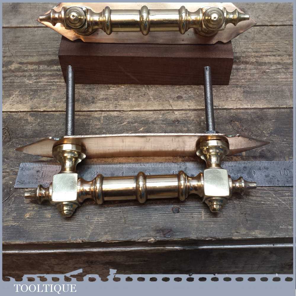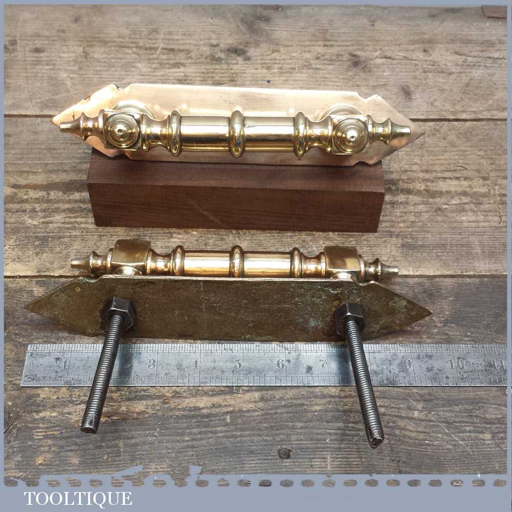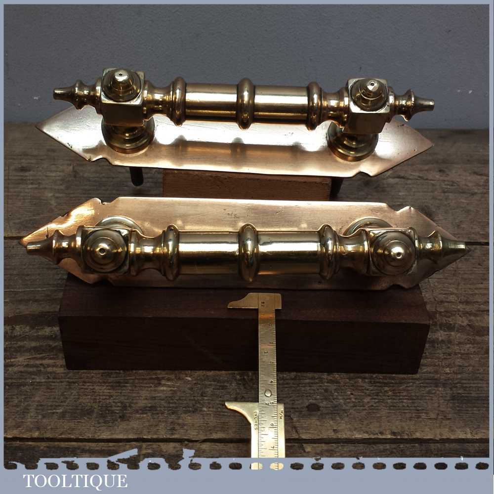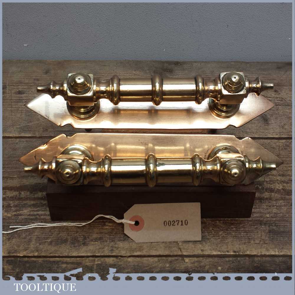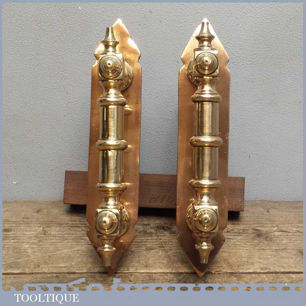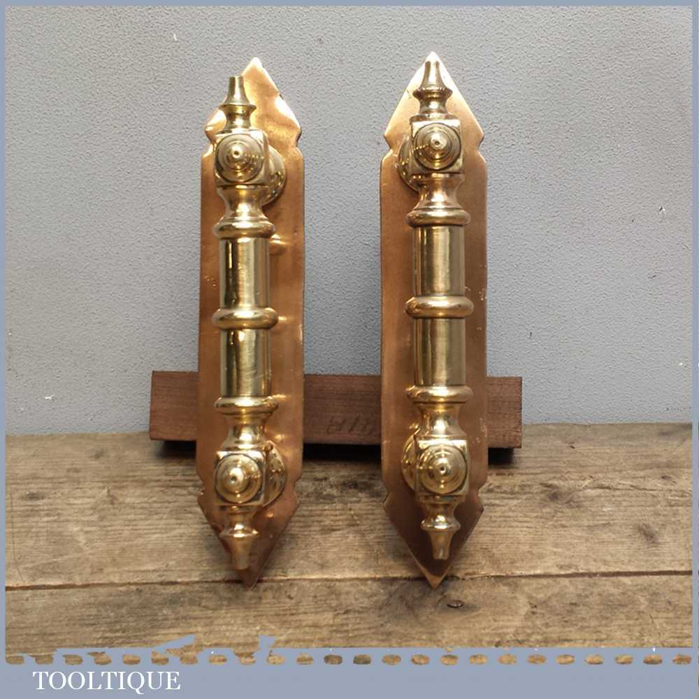 Beautiful pair of reclaimed antique Georgian door pull handles with finger plates in good used condition. These have been cleaned and re-polished and would certainly make an entrance regal.