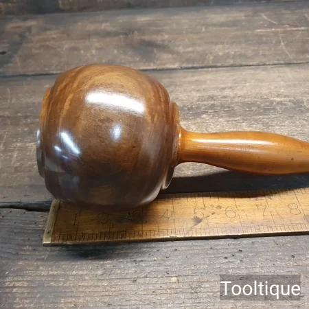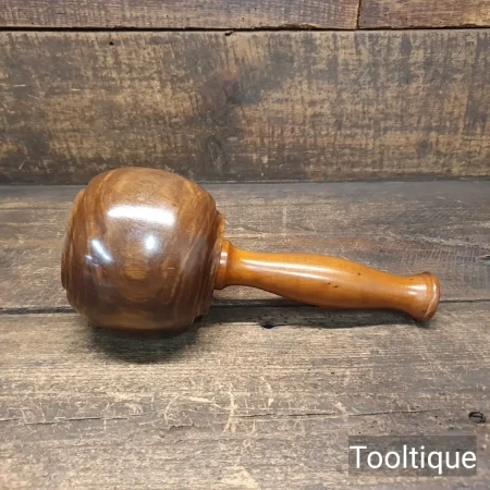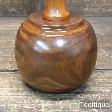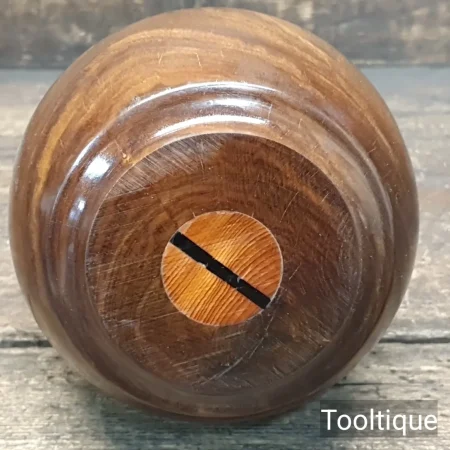 Bespoke hand wood-turned reclaimed old lignum vitae mallet with a Yew handle and ebony wedge. This mallet weighs approx 35 oz in gross weight. These mallets are made with a one-piece handle that continues through to the opposite end of the mallet head and feels very good in the hand. Note: These are made from old lignum crown bowls ensures they are well seasoned but more importantly comes from the region where the densest lignum could be found before being exhausted. The less dense Argentinean lignum took over the market after that and again this is all but gone as it takes so long to grow.