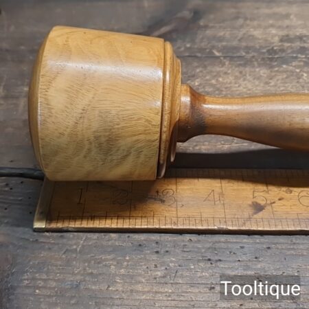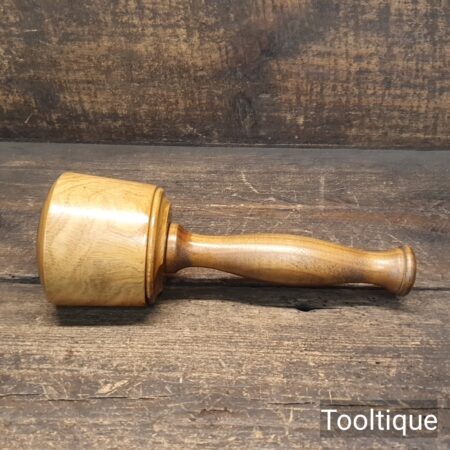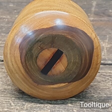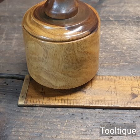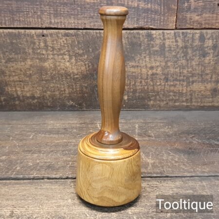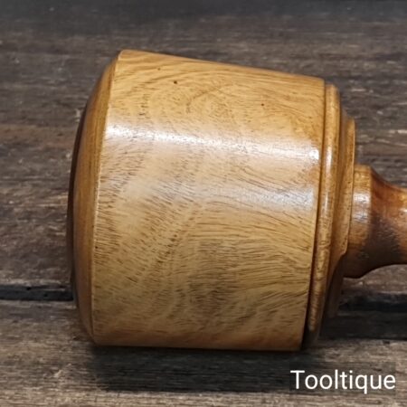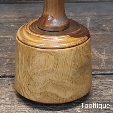 Bespoke Wood-Turned Reclaimed Old Lignum Vitae Mallet with a Cherrywood Handle and ebony wedge. This mallet weighs approximately 16oz in total weight. These mallets are made with a one-piece handle that extends through to the opposite end of the mallet head, providing a comfortable grip in the hand. Note: These are made from old lignum crown bowls, ensuring they are well seasoned, but more importantly, come from the region where the densest lignum could be found before being exhausted. The less dense Argentinean lignum took over the market after that, and again, this is all but gone as it takes so long to grow.