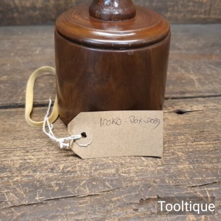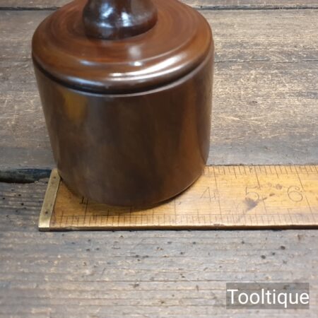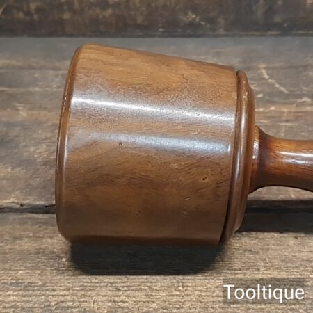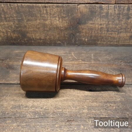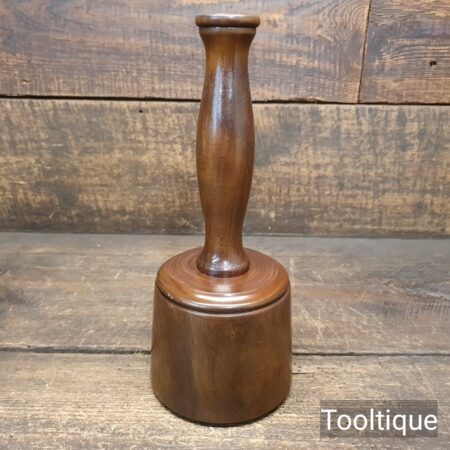 Bespoke Wood-Turned Reclaimed Old Lignum Vitae Mallet with a Iroko Handle and Boxwood wedge. This mallet weighs approximately 30 oz in total weight. These mallets are made with a one-piece handle that extends through to the opposite end of the mallet head, providing a comfortable grip in the hand. Note: These are made from old lignum crown bowls, ensuring they are well seasoned, but more importantly, come from the region where the densest lignum could be found before being exhausted. The less dense Argentinean lignum took over the market after that, and again, this is all but gone as it takes so long to grow.