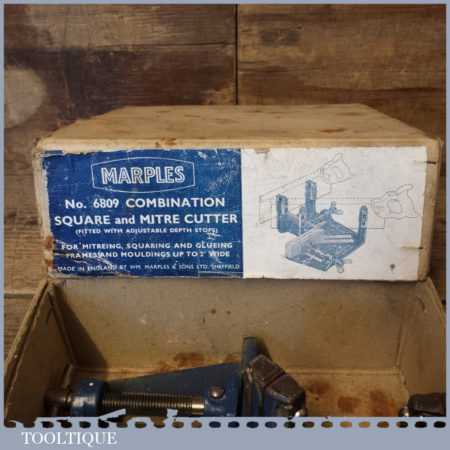Vintage boxed Marples No: 6809 mitre saw cutting vice and square guide and clamp in good used condition.