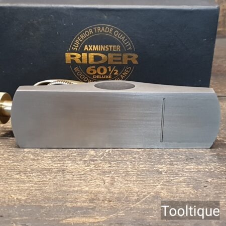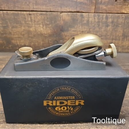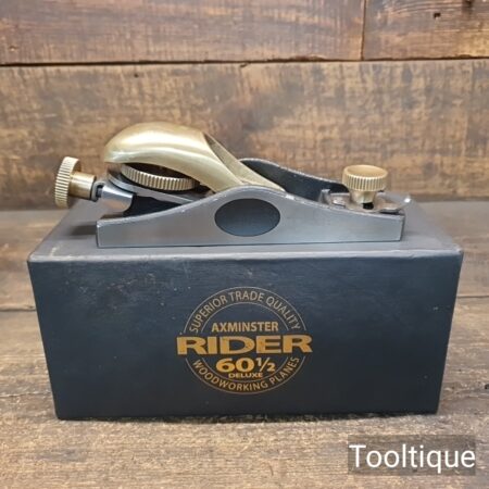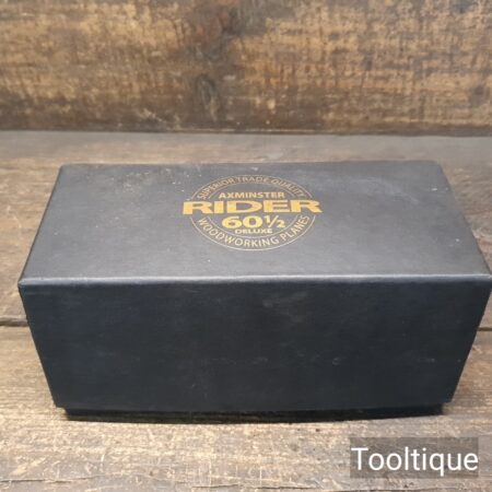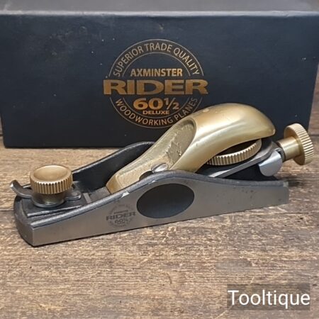 Boxed Rider 60 ½ Adjustable throat Block Plane, refined ready for use and in good used condition. Note: Yes, these need to be lapped flat! When refurbishing planes, we do not merely clean them to make them look good, they are restored to a level that ensures this plane is actually ‘in plane to within 0.01mm’ sharpened, honed and all the components are thoroughly cleaned so that they move freely. Our planes are specifically reconditioned to satisfy professional tradesmen who will instantly know the difference between buying one of our planes over general other used ones.
