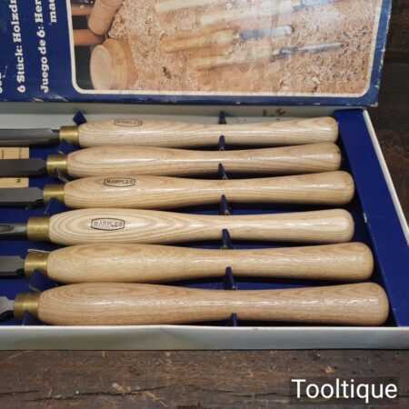 Boxed set of 6 No: Marples No: 1001 woodturning chisels, in good used condition and ready for use