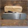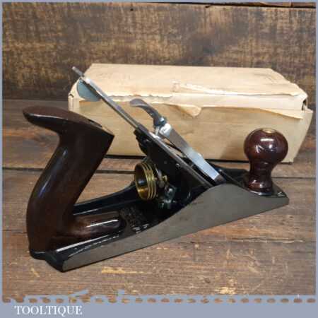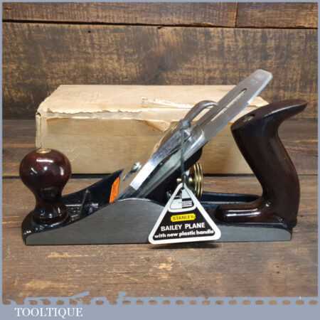 Stanley England No: 4 smoothing plane, near mint boxed – in little used condition. A few scuffs and chips to the paint, otherwise as good as new, this dates probably from the 1980’s – 2000 and made before to the poor G12 series.