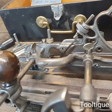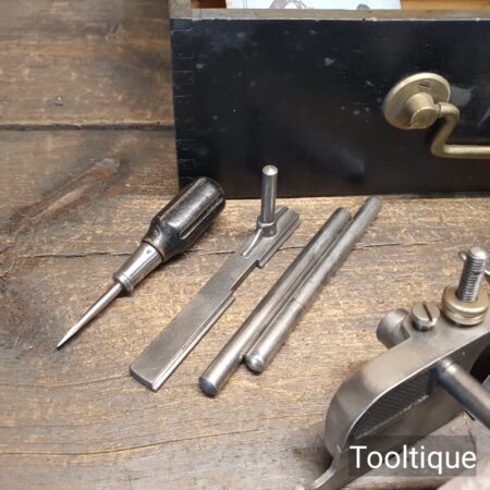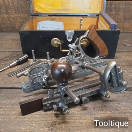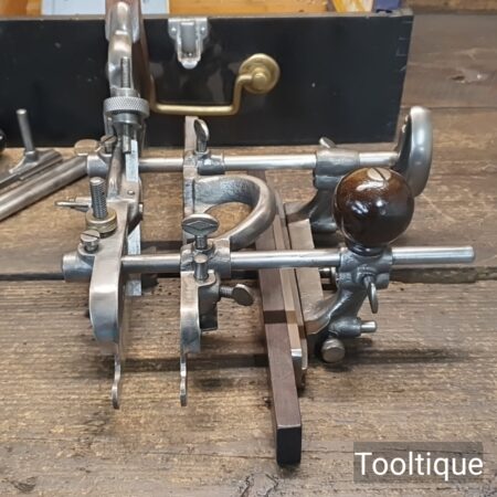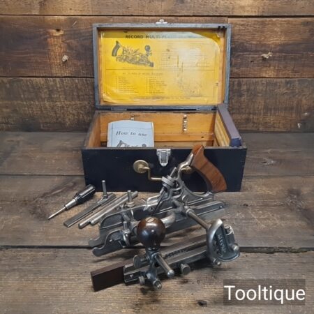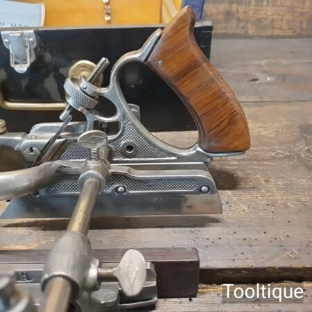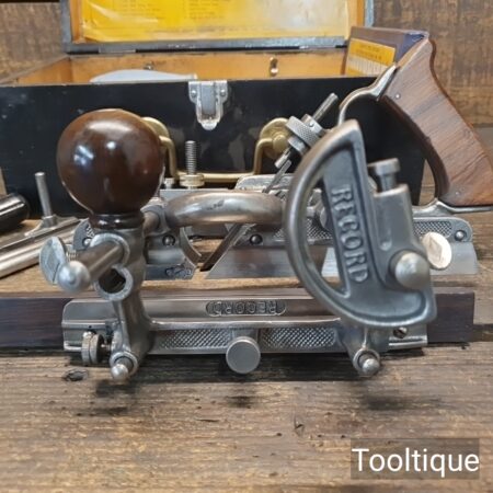 Vintage Record No: 405 Multi Plough Plane with rosewood handles and fences, complete in original box that has been painted black, fully refurbished ready for use and in good used condition.