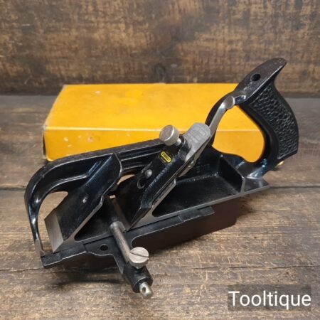 Crisp Boxed Vintage Stanley England No: 78 Duplex Rabbet Fillister Plane, refurbished ready for use and in good used condition. Note: Craftsman replacement Iron. When refurbishing planes, we do not merely clean them to make them look good, they are restored to a level that ensures this plane is actually ‘in plane to within 0.01mm’ sharpened, honed and all the components are thoroughly cleaned so that they move freely. Our planes are specifically reconditioned to satisfy professional tradesmen who will instantly know the difference between buying one of our planes over general other used ones.