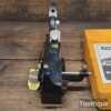 When refurbishing planes, we do not merely clean them to make them look good, they are restored to a level that ensures this plane is actually ‘in plane to within 0.01mm’ sharpened, honed and all the components are thoroughly cleaned so that they move freely. Our planes are specifically reconditioned to satisfy professional tradesmen who will instantly know the difference between buying one of our planes over general other used ones.