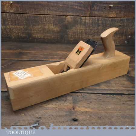 Crisp vintage Salmen carpenter’s 17” beechwood jack plane (stamped with crowsfoot broad arrow and dated 1947) in little or unused condition