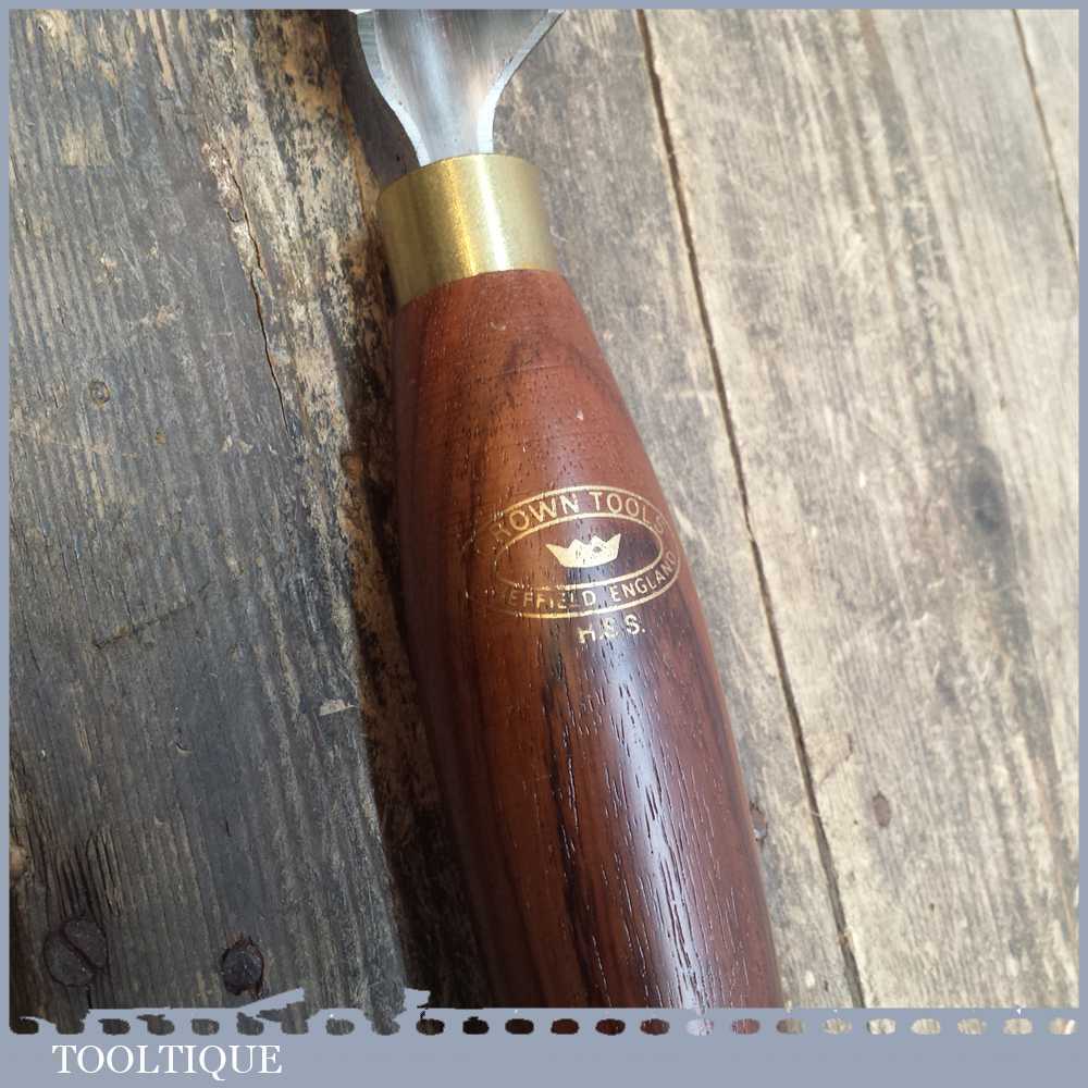Nice Crown Tools of Sheffield 1 3/8” wide HSS Wood turning Gouge Chisel in what looks to be in unused condition. Measures approx 20 ½” overall length including the handle