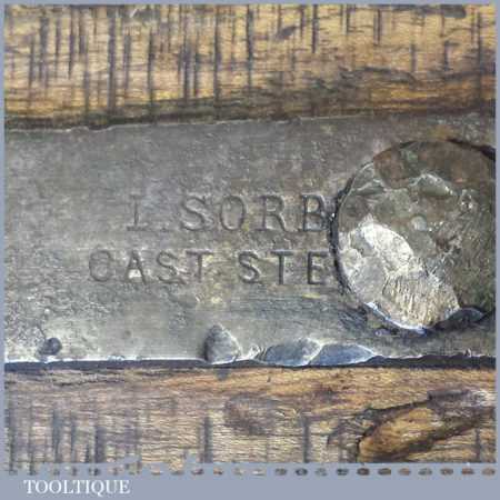 Delightful & rare antique I. Sorby miller’s stone dressing tool made from oak with cast steel supports and blade, in good used condition.