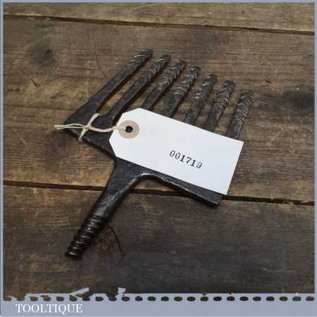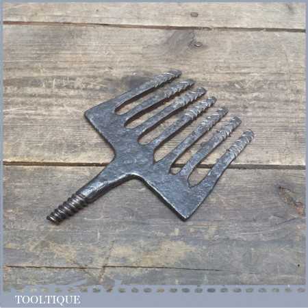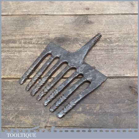 Early Antique English 7 prong eel spear head which has been hand forged by a blacksmith, it a primitive shape with an unusual screw stem and measures 7” overall in length. This is sold as a decorative item only