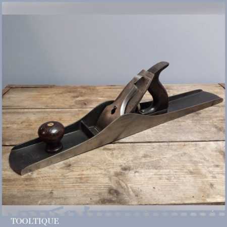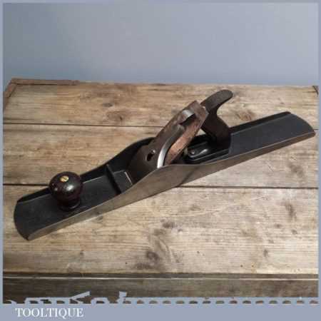 Very Rare and Early Antique Stanley Pre-Lateral Low Knob No 7 Jointer Plane with rosewood handles, Marked Bailey patent in the adjuster screw, the plane is in good condition for its age.