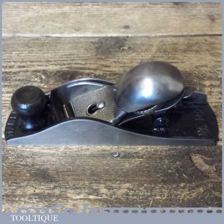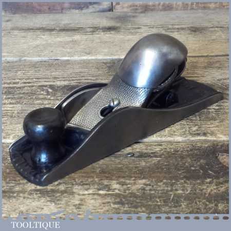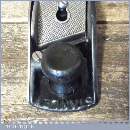 Early antique Stanley USA No: 140 skew rabbet block plane (Pat dated 1894) in good used condition, ready for use. Note: On closer inspection the side wall screws look to be replacements due to the width of the head, although they are the correct Stanley thread.