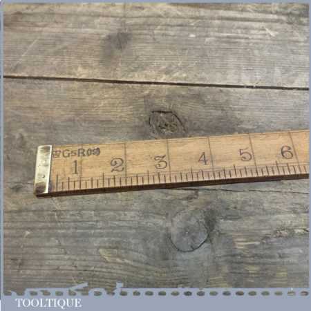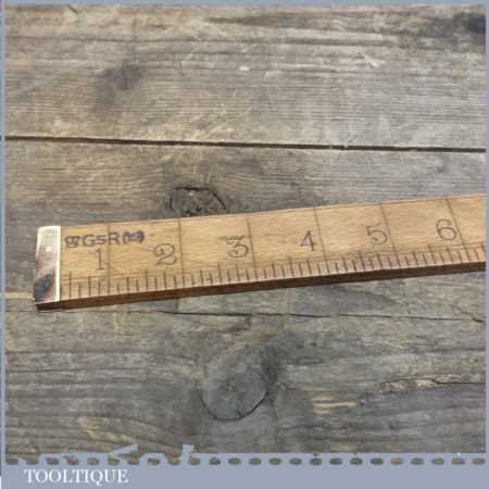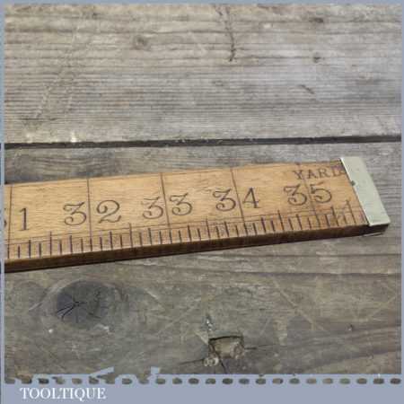 Early unmarked Antique Drapers Boxwood & Brass Yardstick Ruler. These do have a tendency to warp over the years as this one has; this isn’t a major factor as a bit of steam is a good way to cure this.