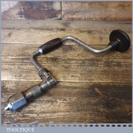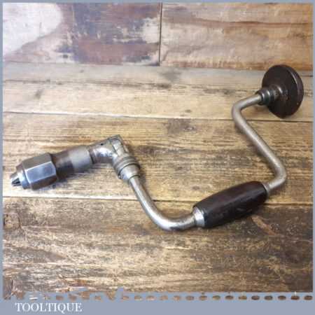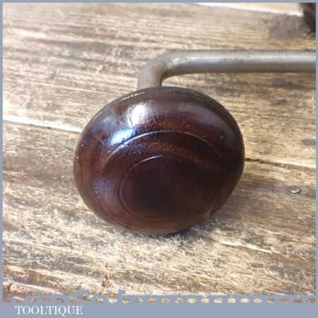 Early vintage carpenter’s ratchet brace with rosewood handles and a 10” swing in good used condition, refurbished ready for use.