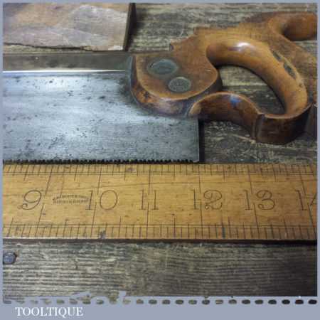 Early vintage R. Groves & Sons 12” brass back tenon saw with 11 tpi, fully refurbished and sharpened cross cut ready for use. This is a lovely saw and as you can see has been looked after during its lifetime.